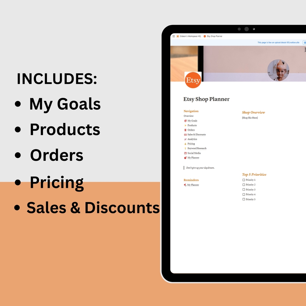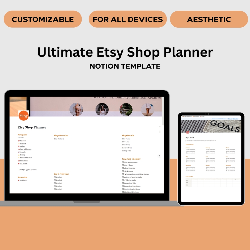 Etsy Shop Planner Notion Template β Track Orders, Listings & Inventory